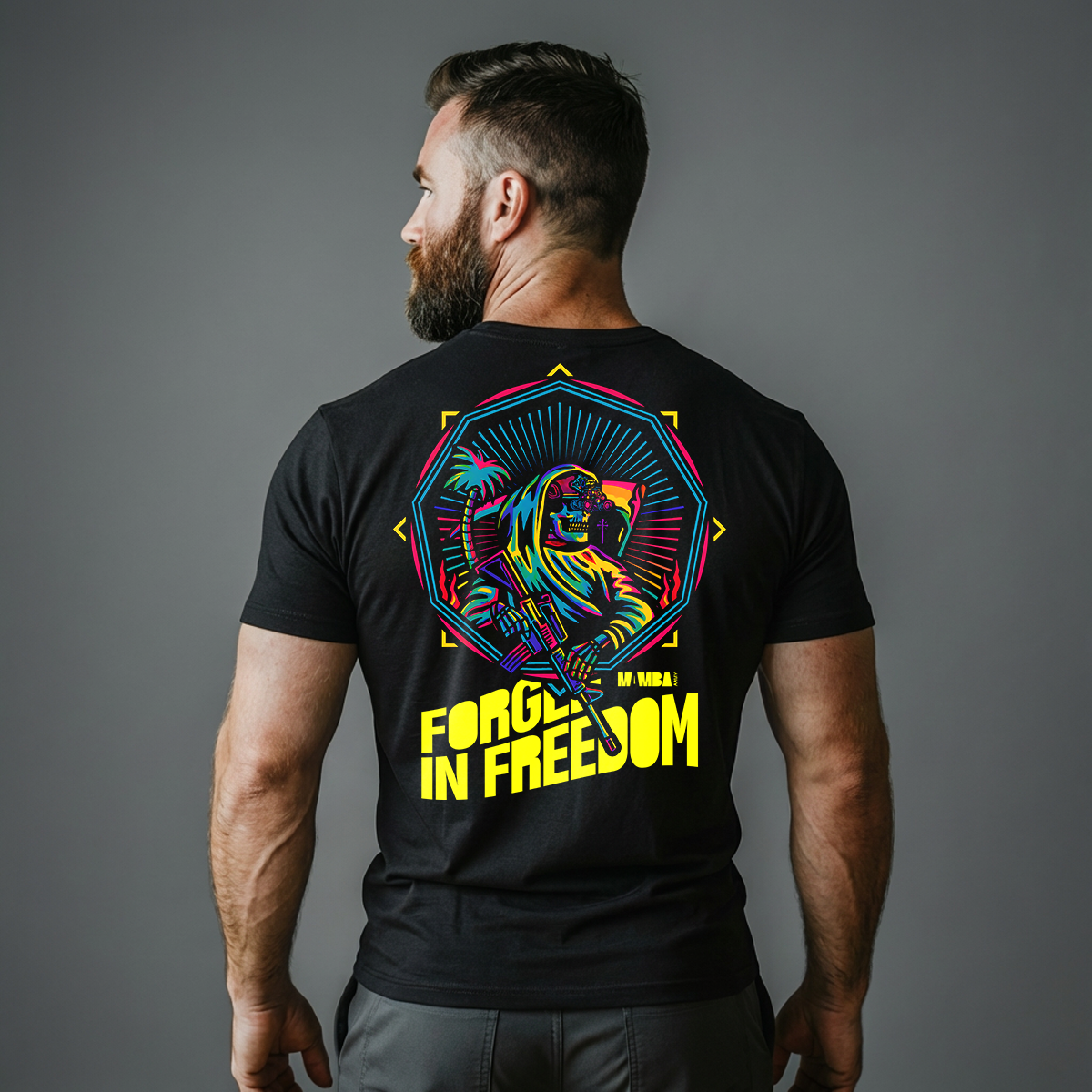 O conceito Forged In Freedom simboliza mentalidade forte, preparo constante e compromisso com valores. Não é apenas sobre estilo militar — é sobre caráter moldado sob pressão. A peça conversa com quem se identifica com cultura tática, streetwear agressivo e identidade de atitude, trazendo uma mensagem poderosa e atemporal.
