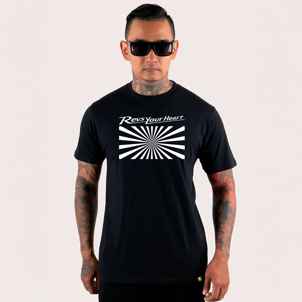 • Estampa com mensagem icônica “Revs Your Heart”