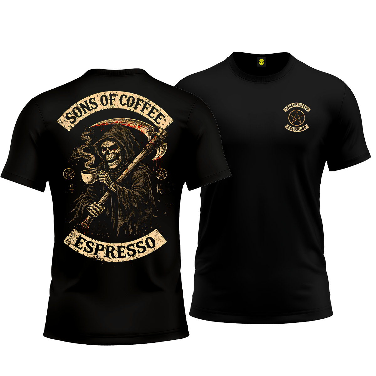 A Camiseta Moto Sons Of Coffee Espresso Motor MC Mamba Motors foi criada para quem vive a estrada com cafeína nas veias e atitude no acelerador. Inspirada na cultura café racer, no ritual do espresso e no espírito MC, essa peça representa energia, velocidade e identidade para quem transforma cada parada em café e cada saída em experiência.