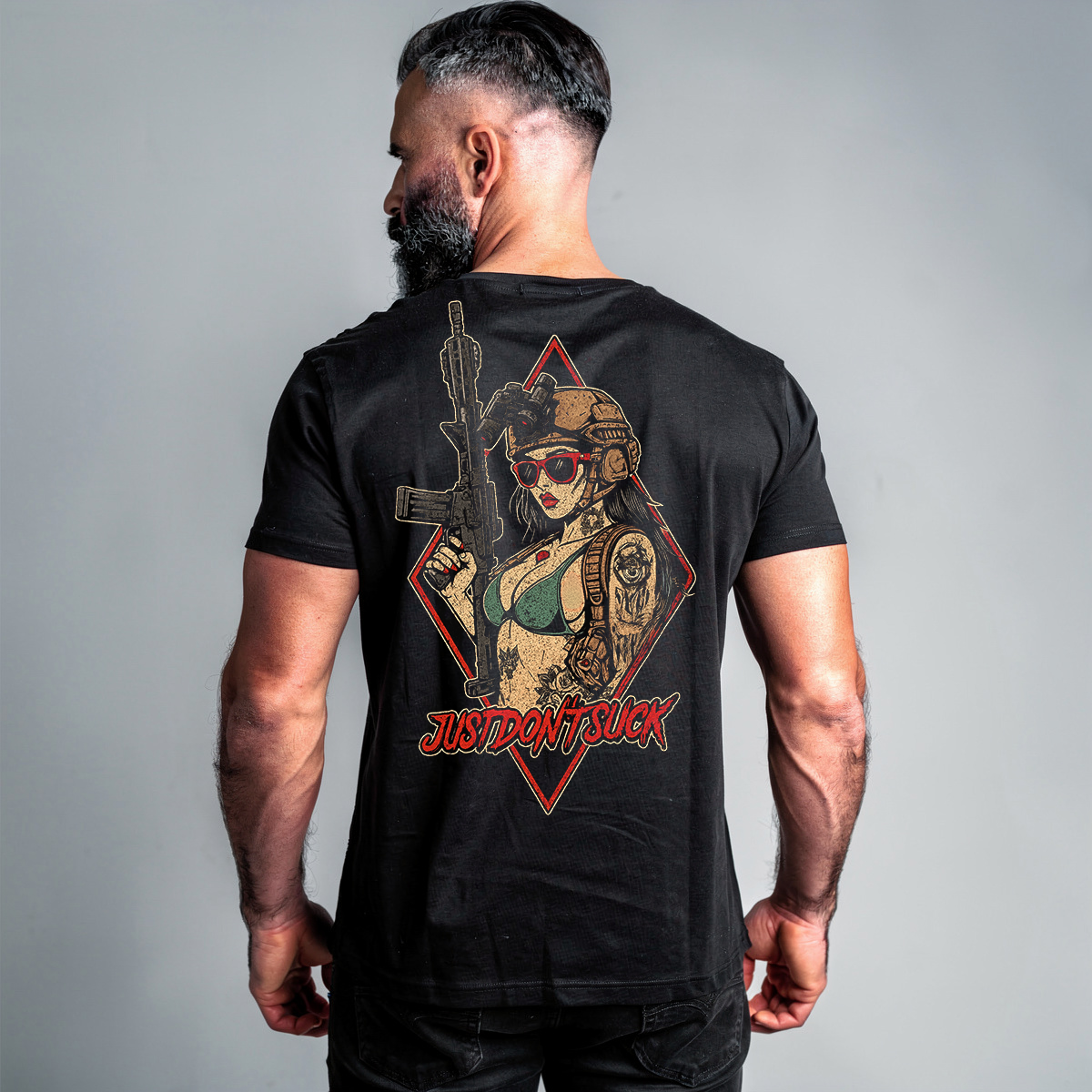 O conceito “Just Don’t Suck” representa disciplina, responsabilidade individual e compromisso com excelência. Não é apenas uma frase — é uma filosofia operacional aplicada ao cotidiano. Uma camiseta pensada para quem valoriza desempenho, foco e identidade forte.